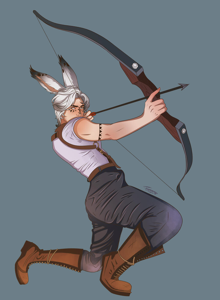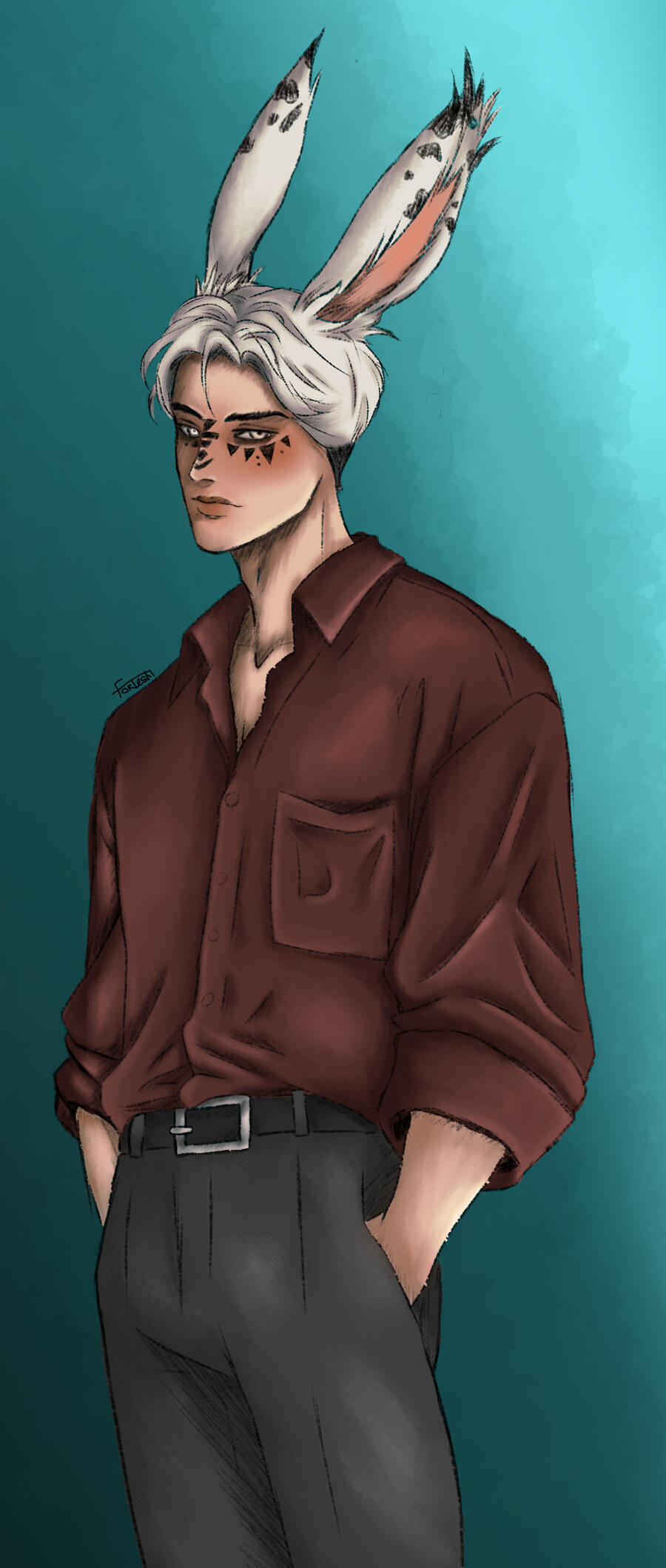 Name: Luvjik BjerkeNickname: Lu, "Old Man," Mr. BFIRace: Viera/VeenaHeight: 6' 0"Age: 41Orientation: DemisexualNameday: 7th Sun of the 1st Astral MoonOccupation: Former Gleaner, Marksman, Officer at BFI (Currently Acting-Director)Main Residence: Ishgard, The MistsCity-State Affiliation: Sharlayan, Limsa LominsaAlignment: Neutral GoodNotable Features: Silver eyes, right eye blind, silver hair, ears have black speckles, facial tattoo.