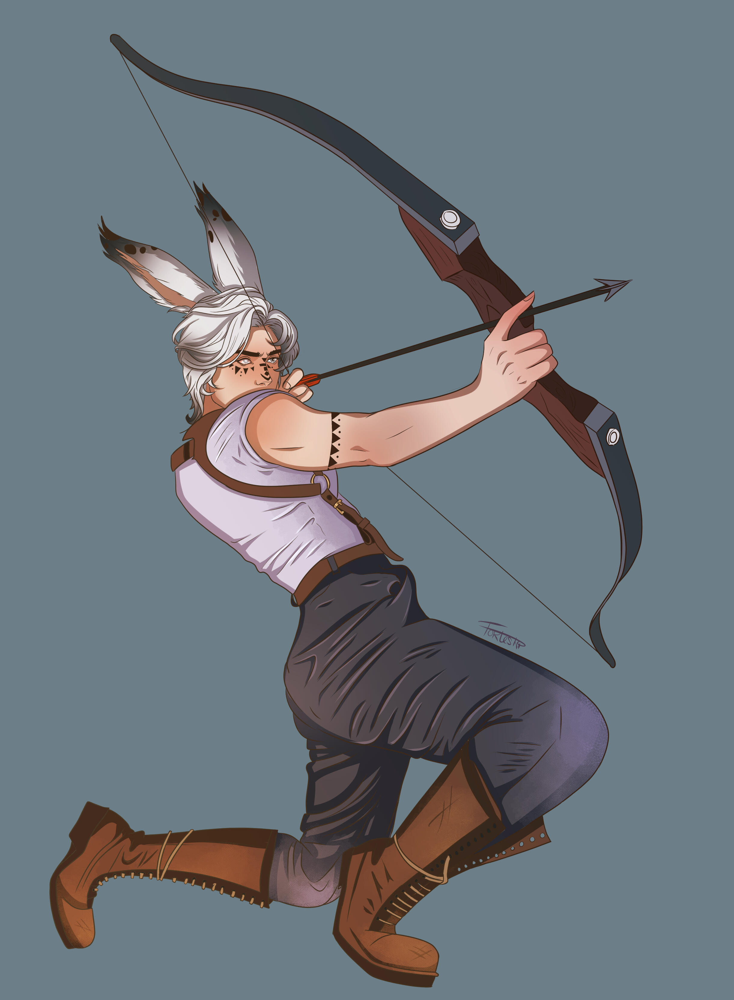 APPEARANCE Lu is of average height and slightly above average stature, leaning into more of an athletic build trained on archery and years of mercenary work. His leporine ears, snowy hair, silvery eyes, and facial tattoos all give away his Veena heritage, though his accent is subtle, faded over many, many cycles away from home.